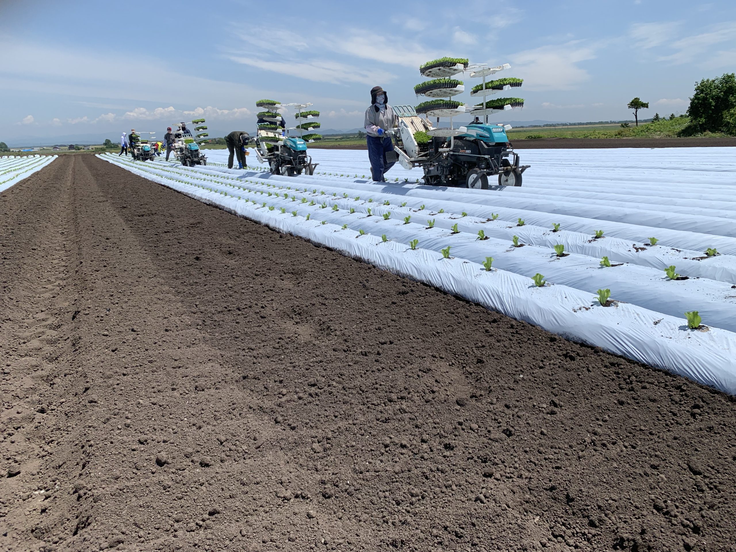 新人社員の定植作業での基礎がようやく定着し、やってみたかったと言っていた機械での定植デビュー。上手に操作できるよう努力中